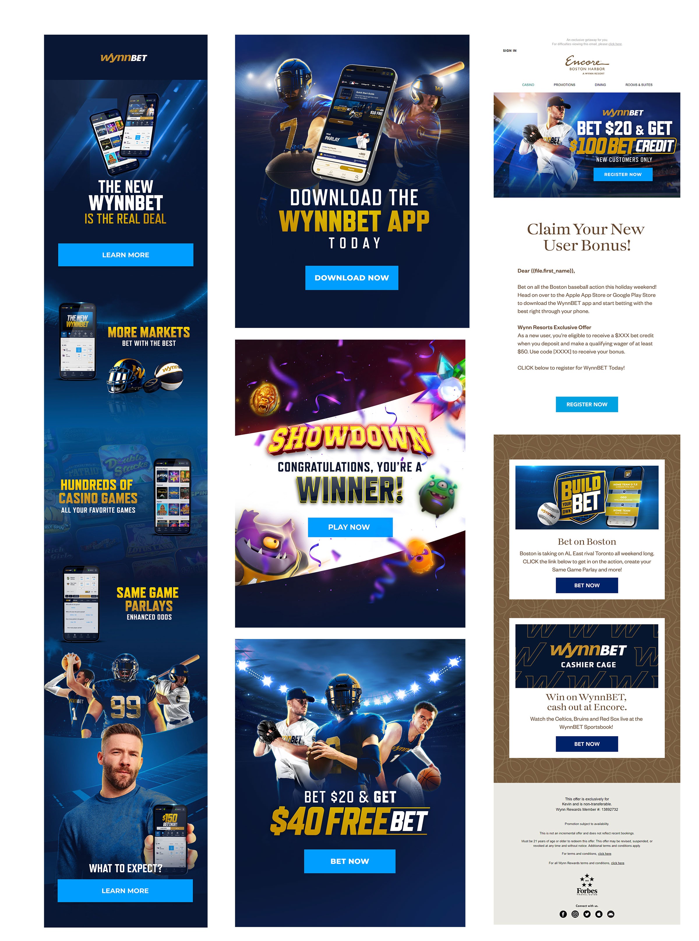 WynnBet was the online gaming division of Wynn Resorts, offering a world-class collection of casino and sports betting mobile options. I oversaw and led visual design of the creative team's output. I designed the material for the website, app, CRM, social and marketing channels as well as printed material, including those used in exhibits and events.