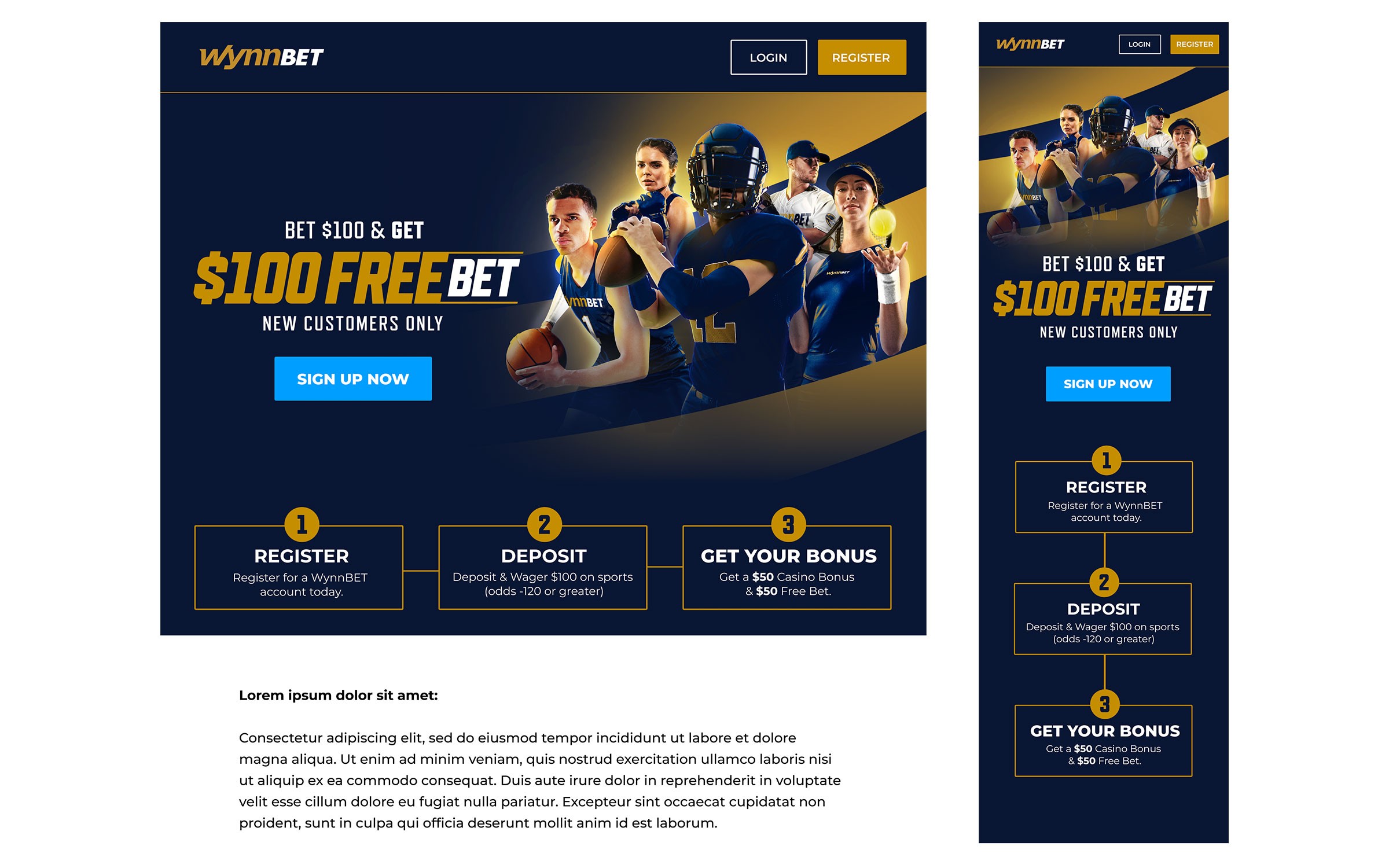 Wynnbet was active in 9 different states in the US and we had to customise certain designs and promotions due to legalisation in these states. WynnBet was also the partner for several different NFL teams including the Detroit Lions and the New York Jets, which we also provided design material for.